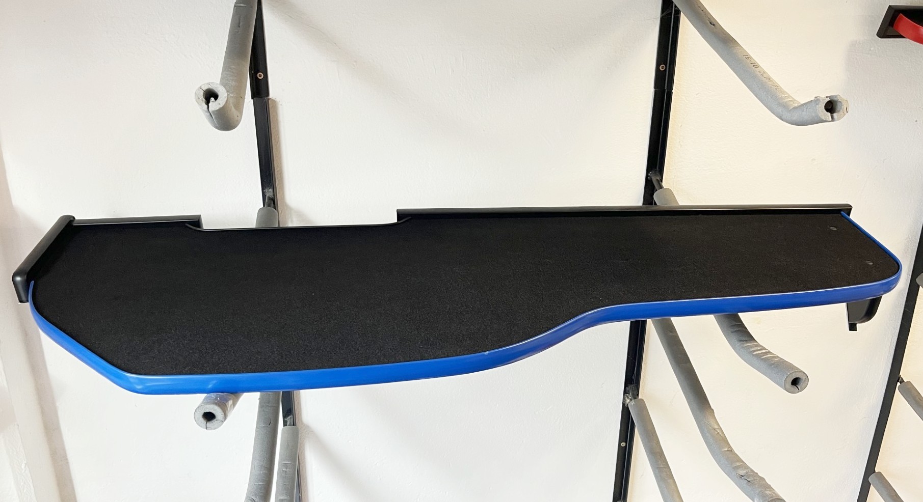 Die Ablage ist ganz in schwarz gehalten mit einer Matte in schwarz ausgelegt.