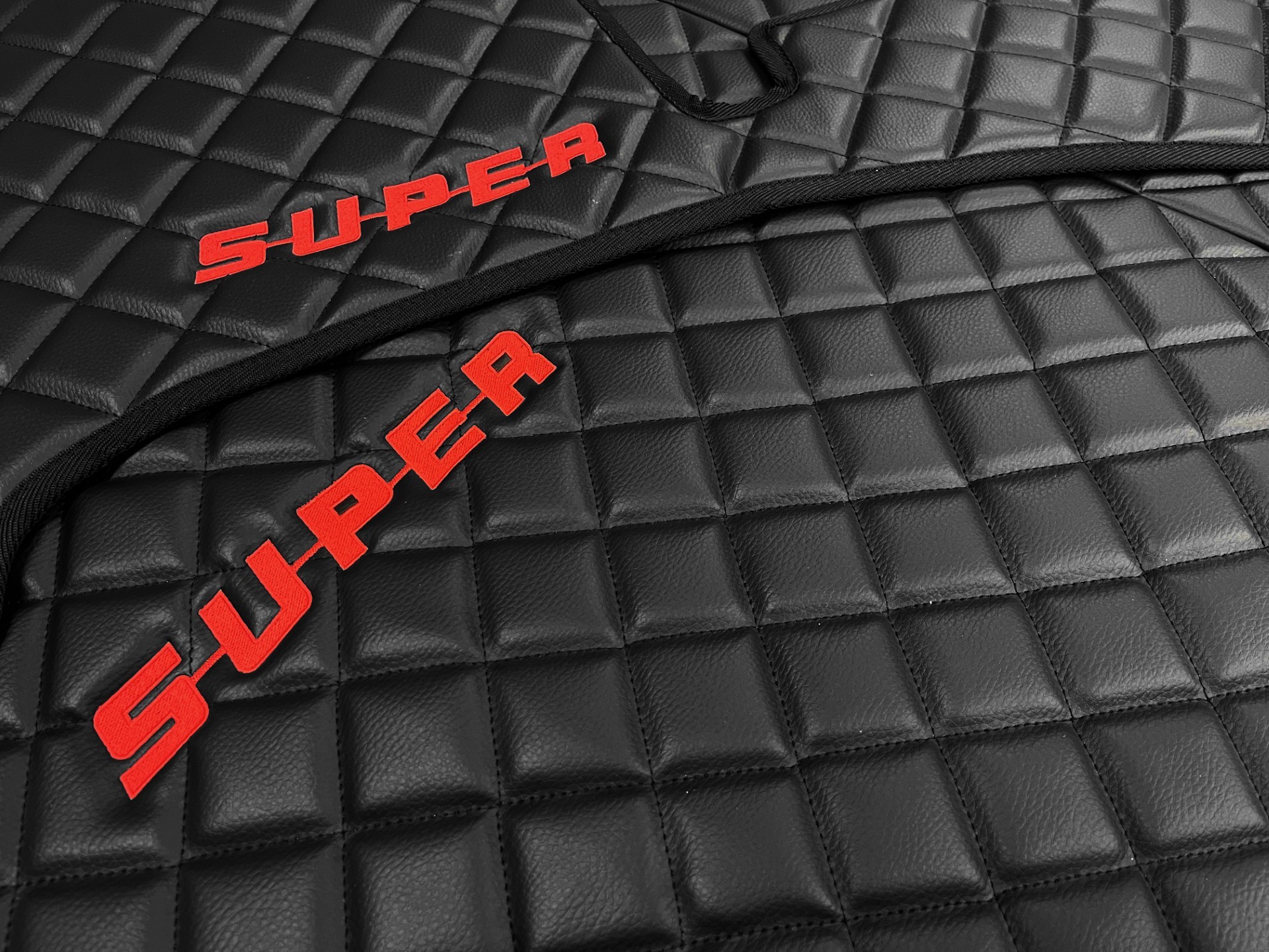 Die Kunstlederfußmatten sind mit weichen Schaumstoff gepolstert, in Karomuster gesteppt - siehe unsere Originalfotos.