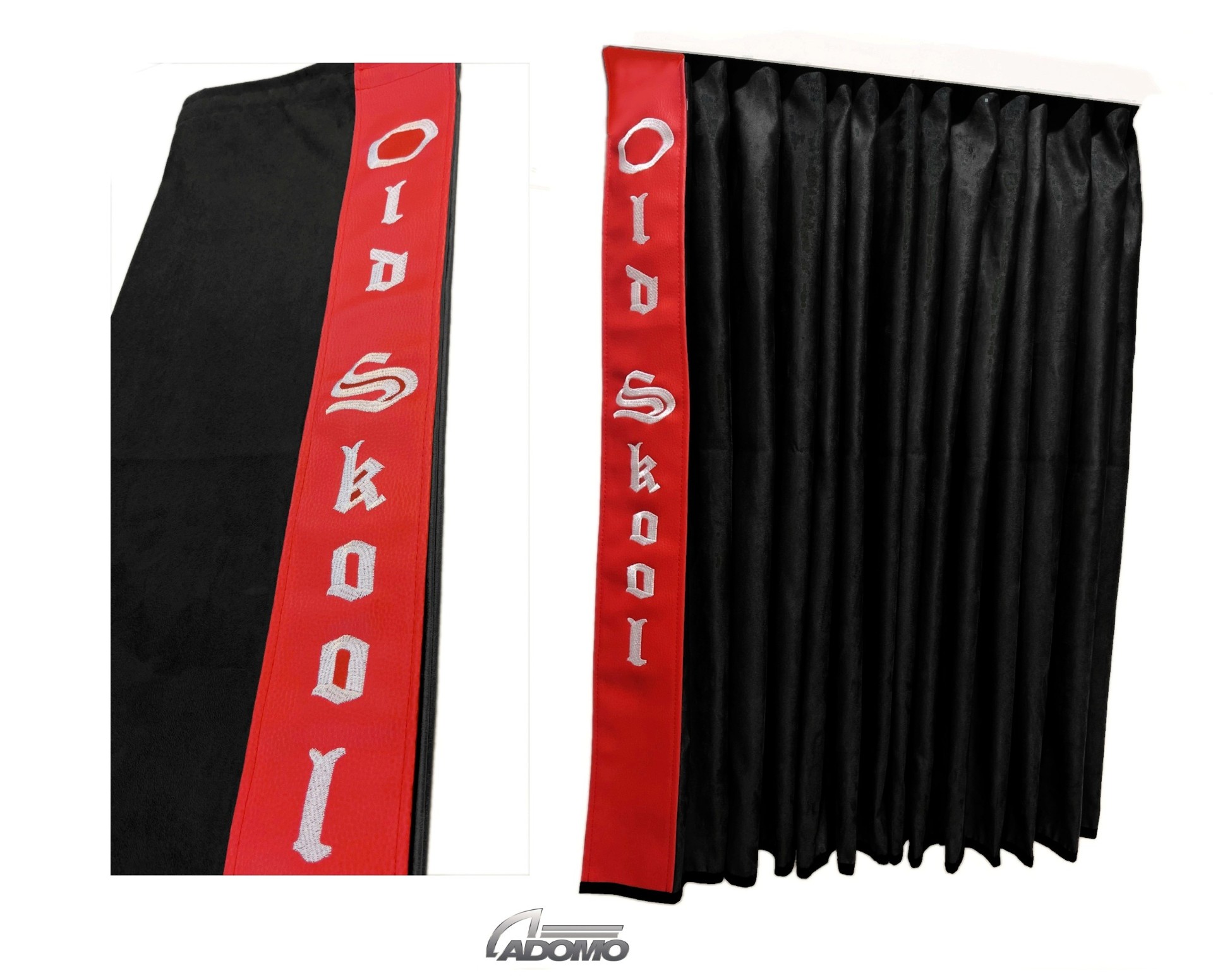 Farbe: Gardine schwarz, Lederkante rot