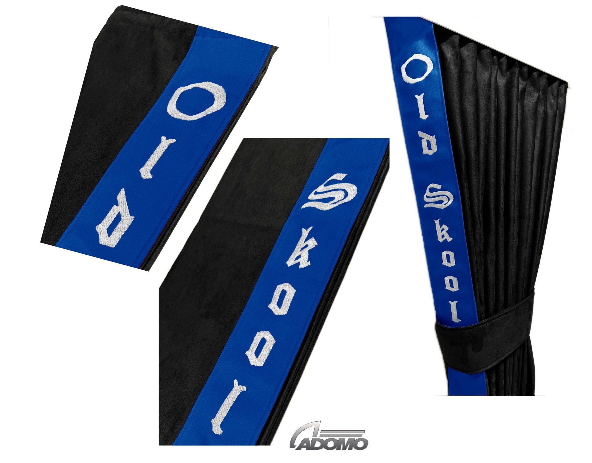 Farbe: Gardine schwarz, Lederkante blau