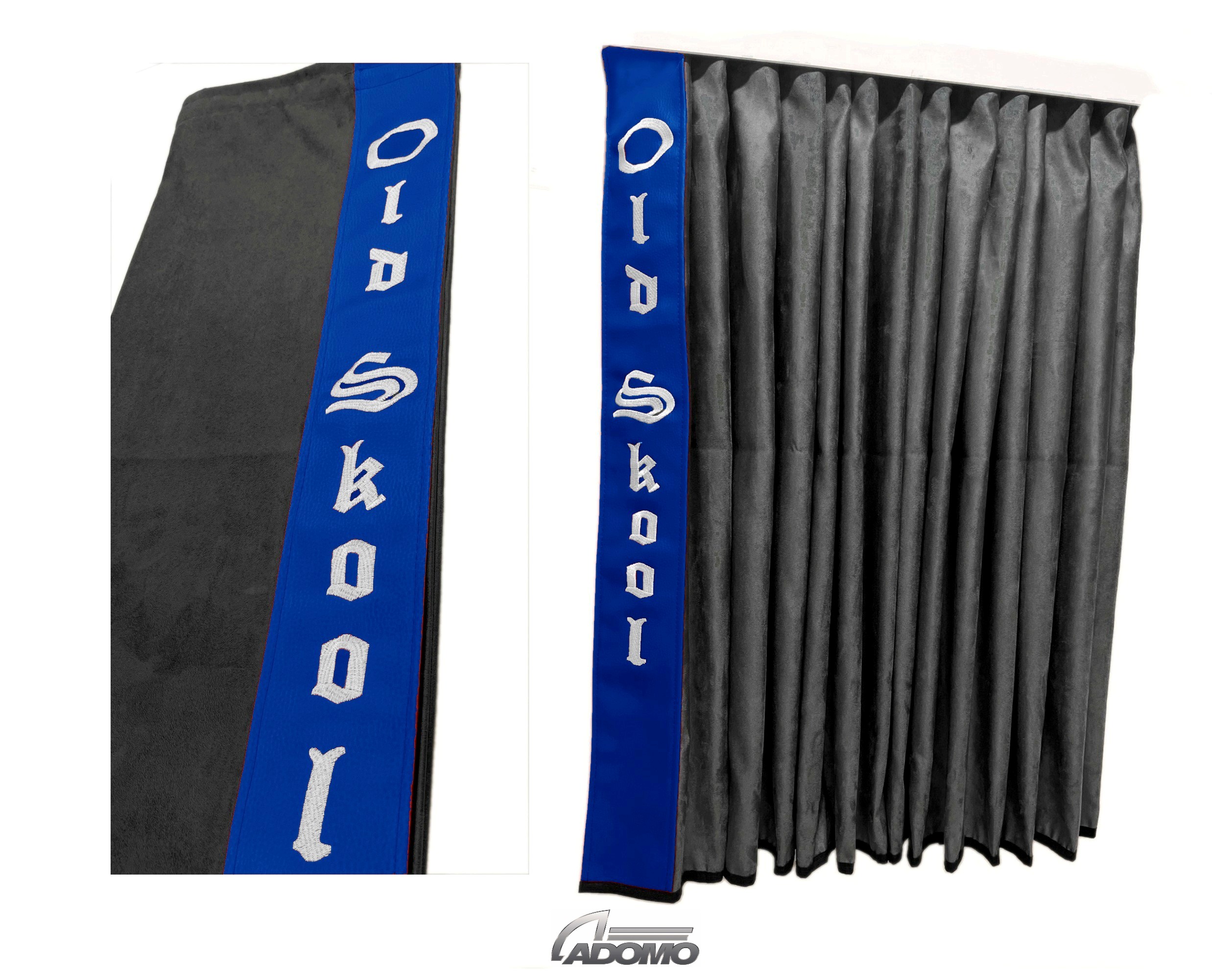 Jede Seitengardine ist mit einer 9 cm breiten Kunstlederkante abgeschlossen, siehe Fotos.