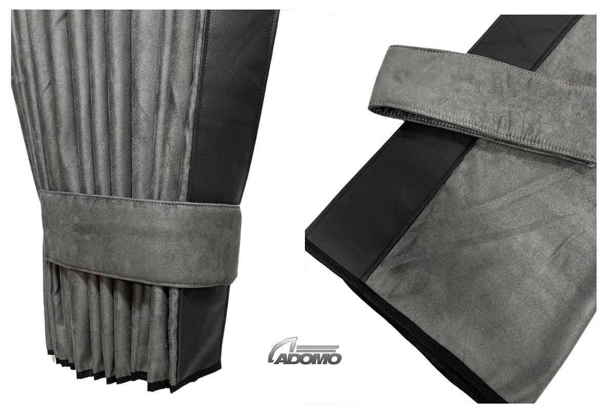 Farbe: Gardine grau, Lederkante schwarz