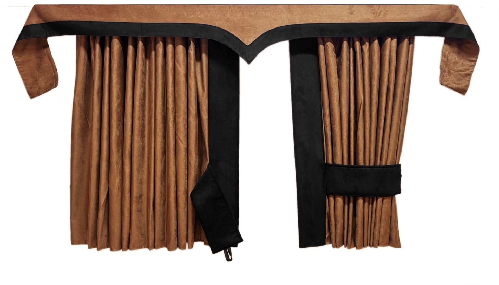 2 X blickdichte Vorhänge (je ca. 90cm x 250cm), inklusive fest vernähter Rückhaltebänder.