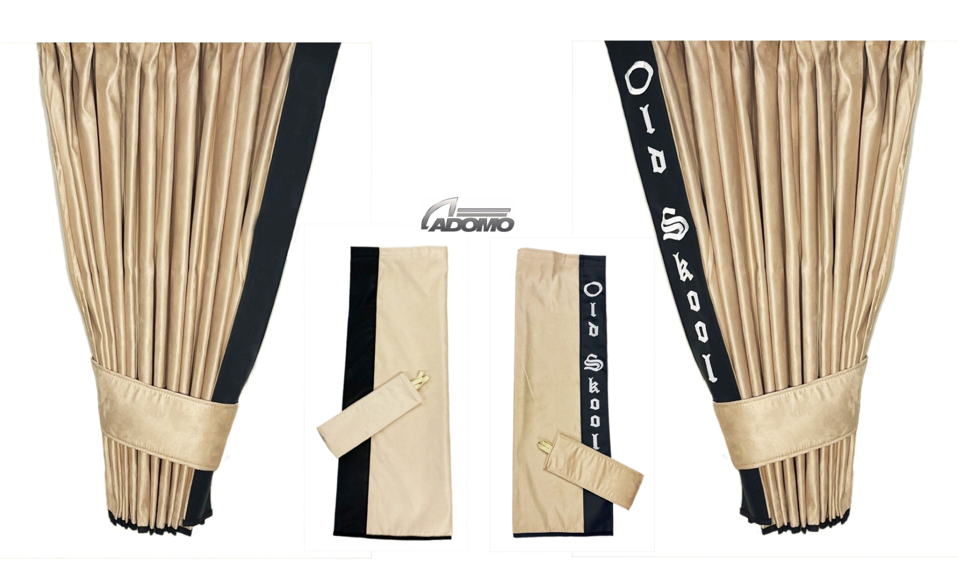 Farbe: Gardine beige, Lederkante schwarz