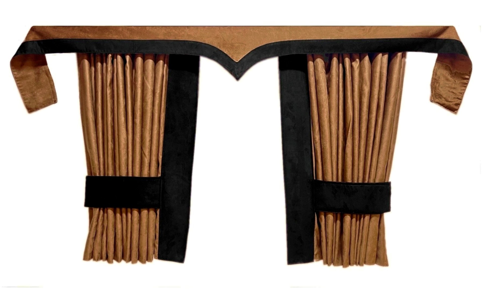 2 X blickdichte Vorhänge (je ca. 90cm x 250cm), inklusive fest vernähter Rückhaltebänder.