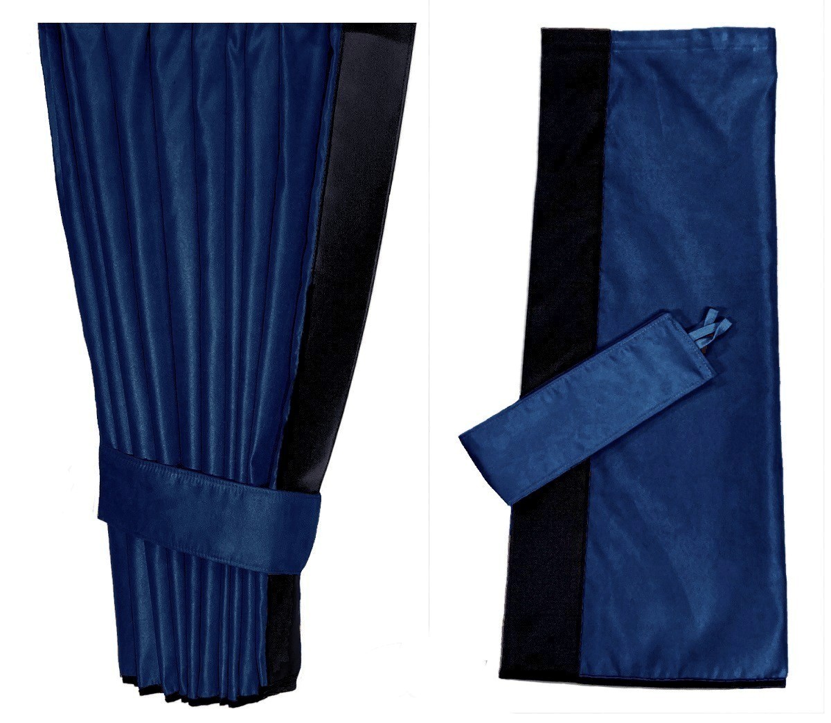 Farbe: Gardine dunkelblau, Lederkante schwarz
