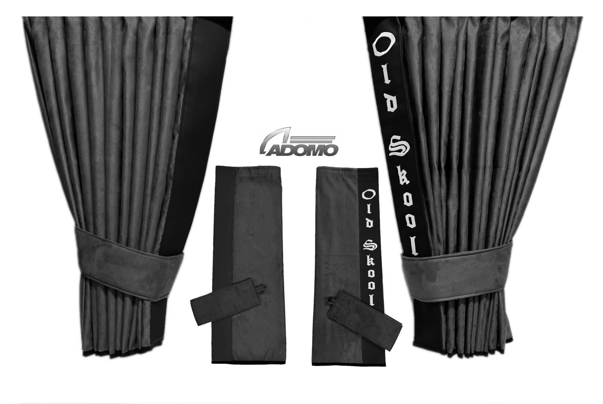 Farbe: Gardine grau, Lederkante schwarz