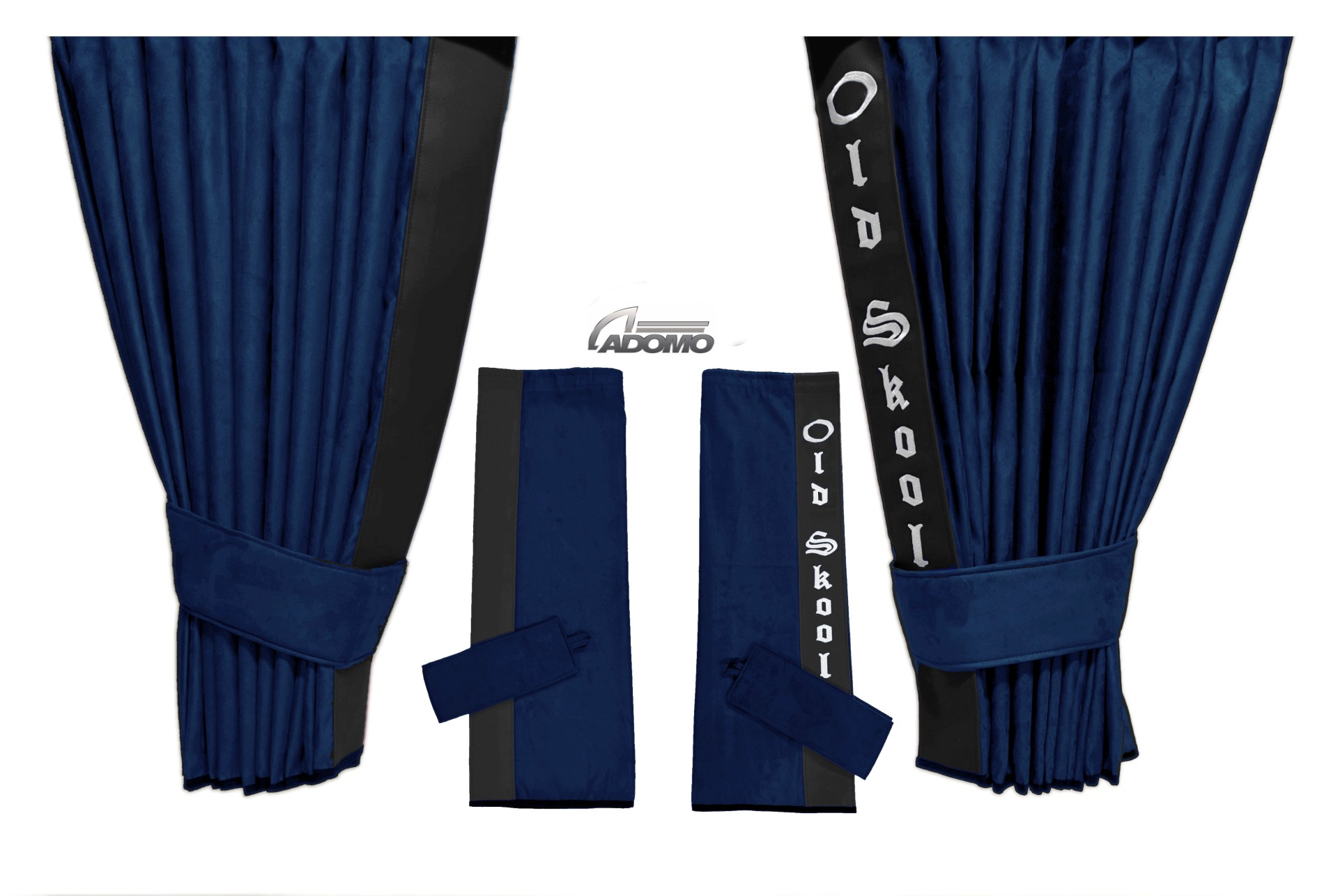 Farbe: Gardine dunkelblau, Lederkante schwarz